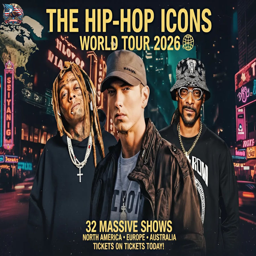 Hip-hop is about to witness one of its most electrifying moments in modern history. Three of the genre’s most influential and enduring icons — Eminem, Snoop Dogg, and Lil Wayne — are officially joining forces for a colossal 2026 World Tour that is already being hailed as a once-in-a-generation event.
