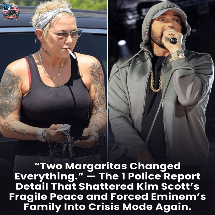“Two margaritas changed everything.” That stark line, pulled directly from a newly surfaced police report, has reverberated far beyond a routine DUI filing. The document states that Kim Scott admitted to consuming “two margaritas” at a Chili’s restaurant before getting behind the wheel. What might sound like a casual detail has instead reopened deeply personal wounds for her family — particularly for Eminem and their daughter, Hailie Jade.